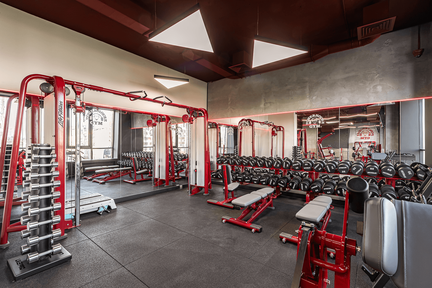 Оборудование международных брендов Hammer Strenght, Life Fitness, Paramout - зона свободных весов, зона тренажеров, кардиозона, зона функционального тренинга.